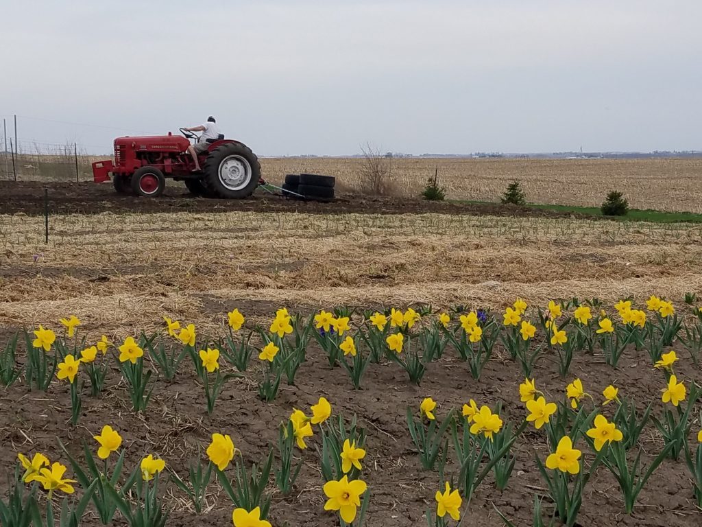 Where the old granary was we used the pad to build a greenhouse. Lindsey starts all of our plants from seeds in the greenhouse. Along with bees and produce we envisioned a field of flowers. The fall of 2020 we planted 3000 tulip bulbs along with other spring flowers. We are excited for another new addition on the farm, we have a new store that we will be opening the spring of 2025. Along with more flowers for a U Pick Flower.